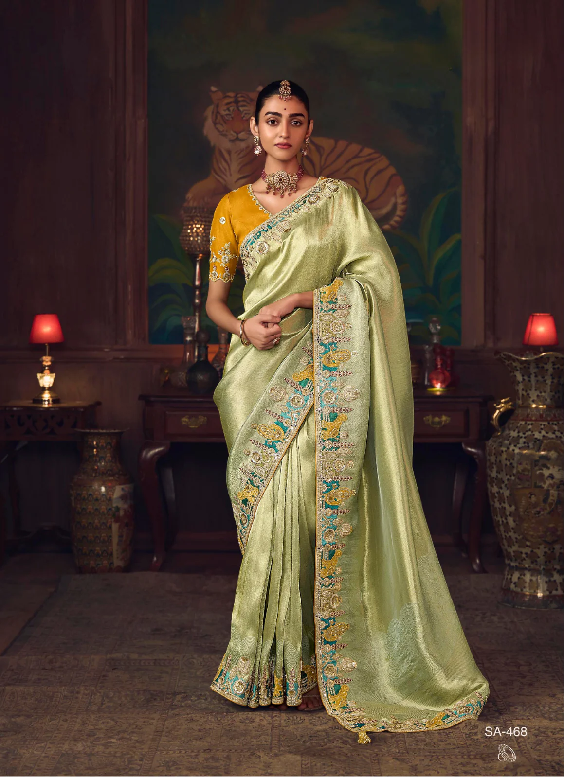 Soft Pistachio Green Silk Saree with Hand worked Border & Designer Embroidery