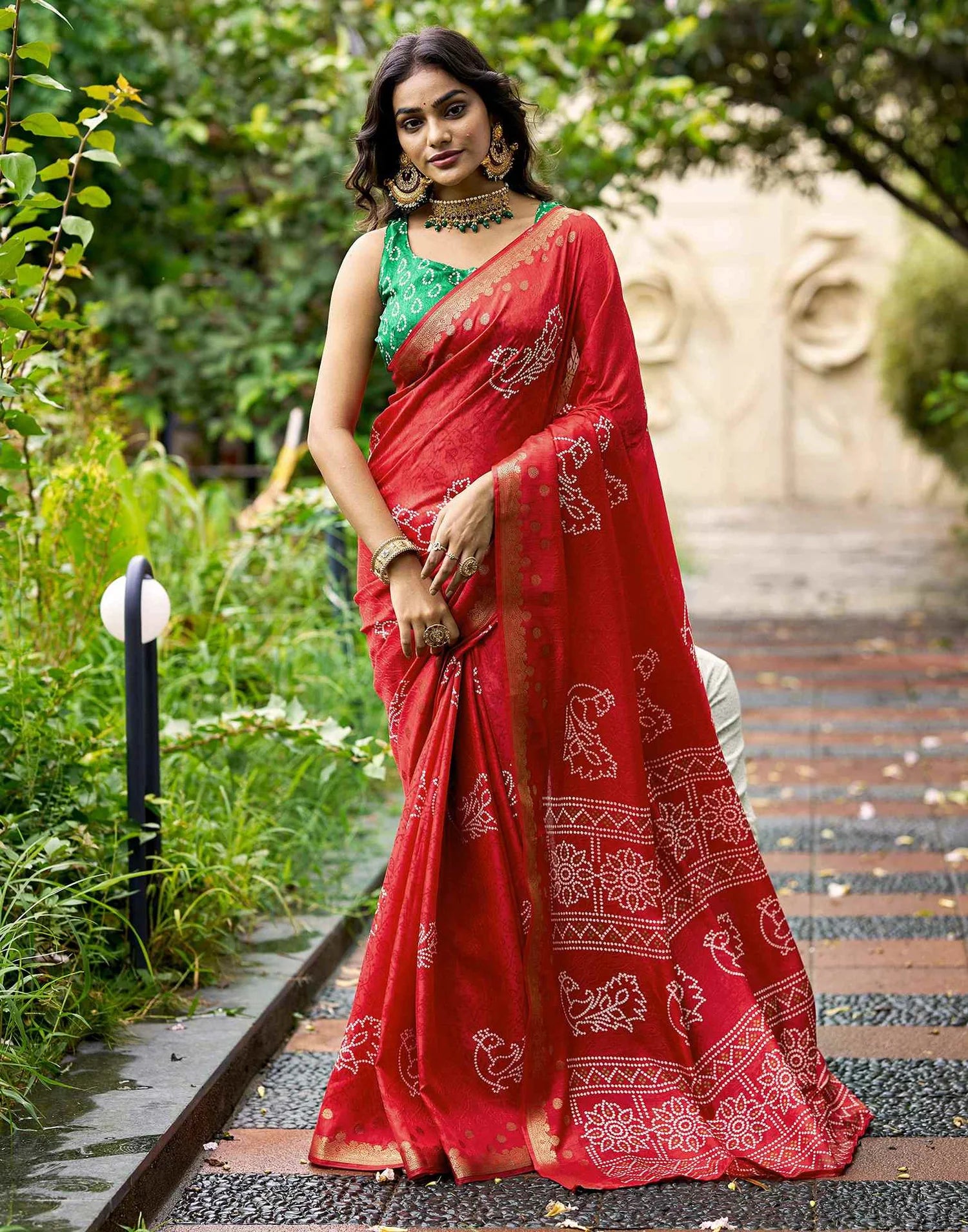 SR Scarlet Silk Saree with Self Weave & Jacquard Border