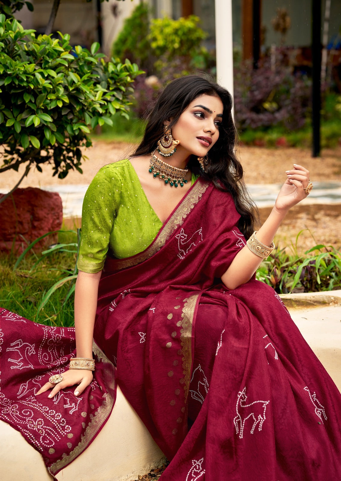Introducing Scarlet — an amazingly designed collection by SR, crafted for women who love elegance with a touch of heritage charm. This saree is made from silk self-weave fabric that gives a beautiful texture and natural shine, enhanced with a rich jacquard border that adds a royal finish to the drape.