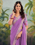 Stavan Raghumala Light Purple Heavy Georgette Embroidered Saree with Designer Blouse