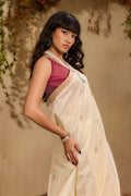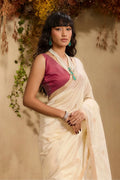 The pristine white tone symbolises purity and sophistication, making this saree a versatile choice for daytime ceremonies, festive gatherings, and elegant cultural occasions. A true wardrobe essential for lovers of understated luxury and heritage textiles.