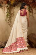 Titan White Kanoi Patola Tussar Silk Handloom Saree