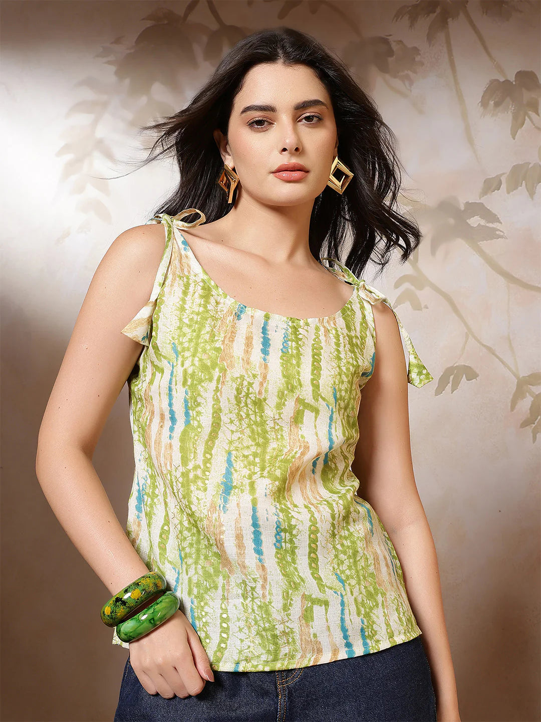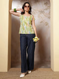Women’s Cotton Blend Green Sleeveless Printed Top