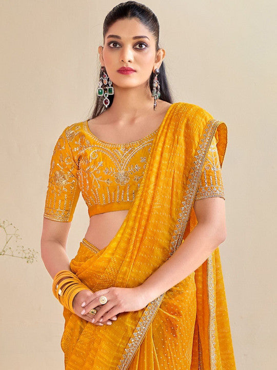 Yellow Bandhniya Georgette Saree