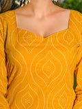 Bask in the glow of sunshine with this yellow printed cotton kurta set, paired with matching palazzo pants and a light dupatta. The straight-fit kurta brings effortless elegance, while the breathable cotton fabric ensures comfort throughout the day. Whether it’s a festive gathering, office wear, or casual outing, this 3-piece set keeps you stylish and graceful.