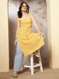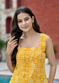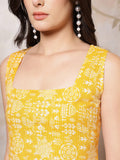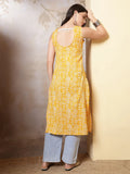 Yellow Printed Straight Sleeveless Kurta for Women