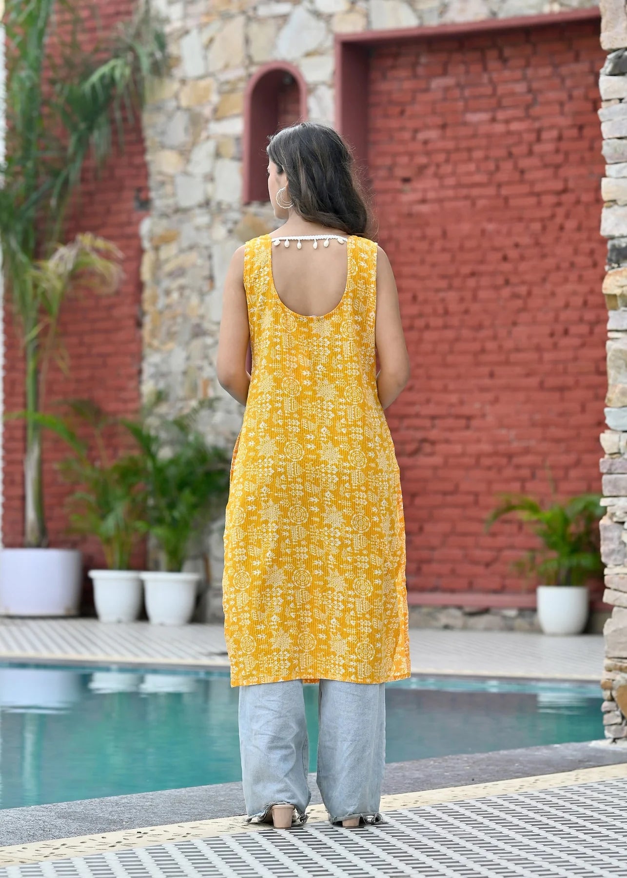 Pair with minimal gold or oxidized silver jewelry and sandals for daytime chic, or add statement earrings and mojaris for a festive or semi-formal look.